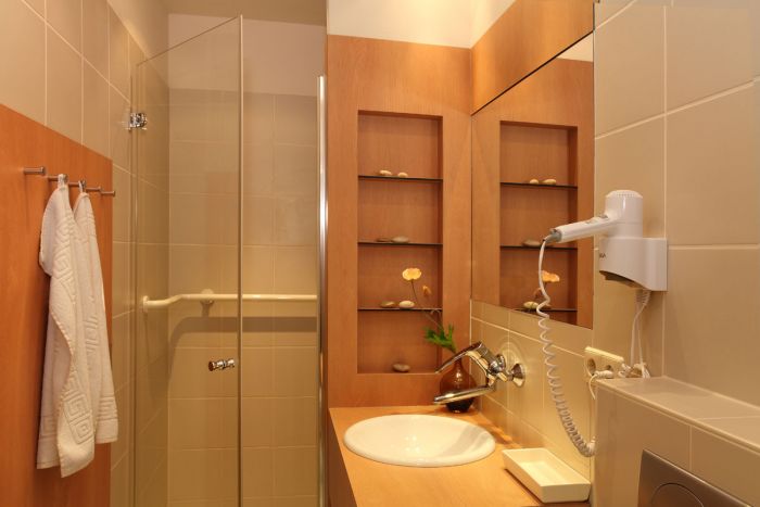 Es handelt sich dabei fast ausschließlich um Ein- oder Zweibettzimmer. Fast alle Zimmer verfügen über eigene, mit modernen Duschen und Haartrocknern ausgestattete Badezimmer. Warme Holztöne sorgen sowohl im Bad als auch im Zimmer für eine behagliche Atmosphäre. Gemütliche Sitzmöbel ermöglichen Ihnen und Ihren Gästen einen angenehmen Aufenthalt.